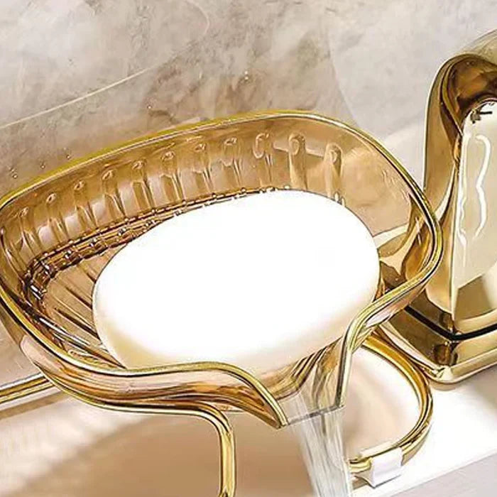 Acrylic Soap Holder with Elegant Golden Metal Base