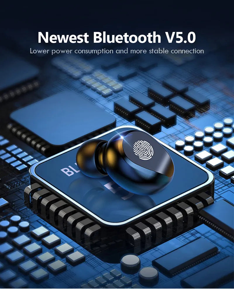 The F9 Air Buds bring together cutting-edge features and comfort for a superior listening experience. Equipped with a 2000mAh charging case, these earbuds not only keep themselves charged but can also power your phone on the go. The new Bluetooth 5.0 chip ensures stable connectivity and instant pairing with any device. Enjoy crystal-clear sound with CVC 8.0 noise reduction technology that blocks out external noise for uninterrupted calls and music. The IPX7 waterproof rating allows you to use these earbuds during intense workouts or in rainy conditions, while the 8D stereo sound delivers immersive, high-fidelity audio. The LED display on the case gives you real-time battery levels for both the earbuds and the charging box. Lightweight and designed for long-term wear, these earbuds offer comfort and convenience.